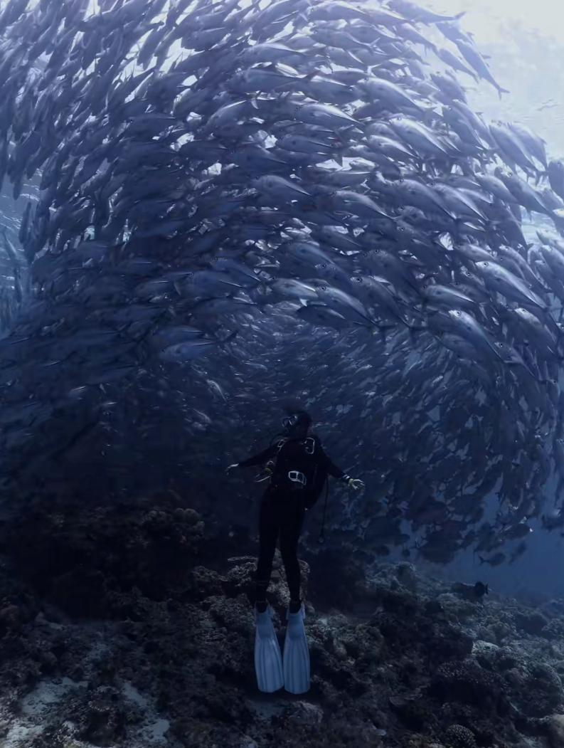 预订一艘可容纳20人的游艇,却选择独自出行——这听起来有些任性,但却是送给自己的最好礼物。当其他游客成群结队地在船头自拍时,我默默退到船尾,任由海风拂面。打开手机里的抖音漫画APP,算法像是洞悉了我的心情,首页推送的竟是《孤独星球》系列的海洋篇短片。钢琴旋律与海浪声交织,屏幕里跃动的蓝与眼前无垠的蓝渐渐重合,那一刻,我仿佛同时拥有了两种海洋。